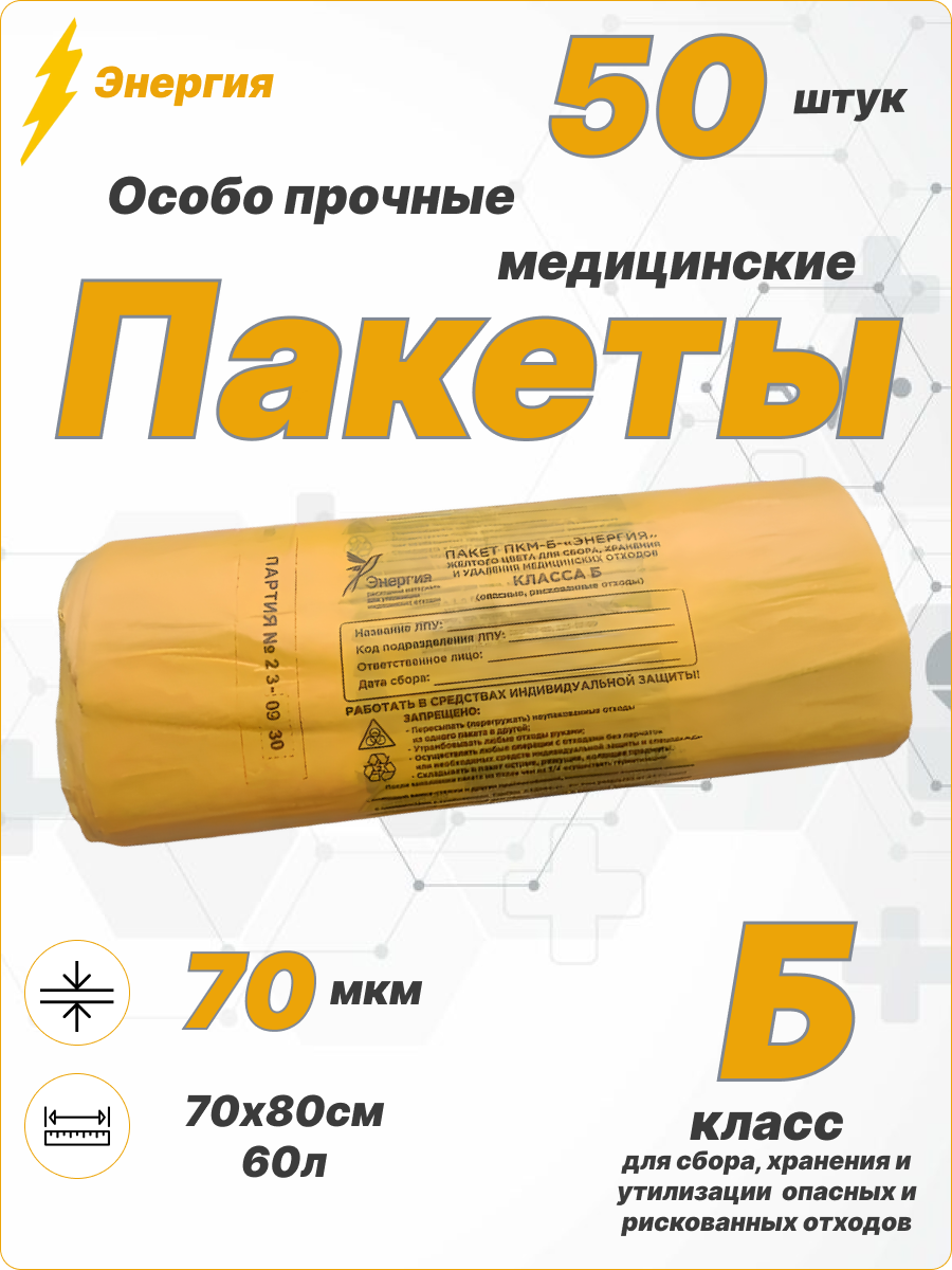 10 цен на Пакеты для медицинских отходов класса Б,70*80,70мкм. жёлтые-50шт