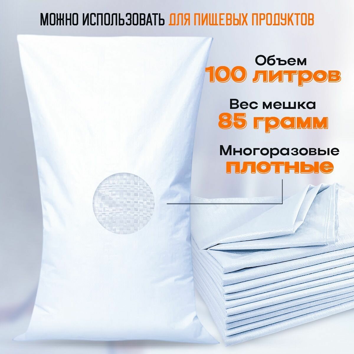 Мешки строительные 80х120см, 10шт, 200л, белые, сверхпрочные, полипропилен 935 ₽