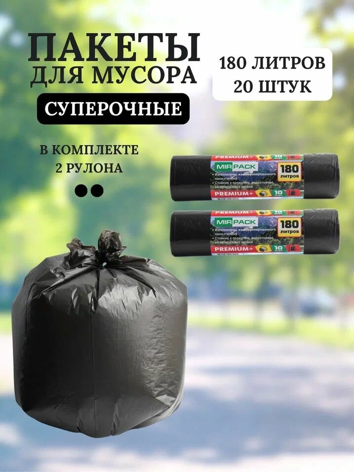 Мешки MirPack Premium+, для мусора, полиэтилен, сверхпрочные, 180л, черные информация: