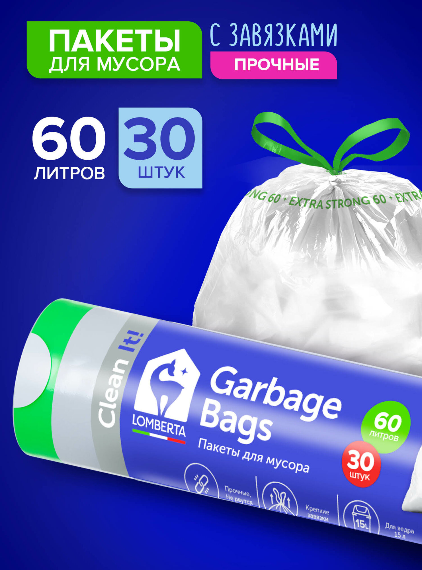 Мешки для мусора Lomberta, прозрачные с завязками в рулоне, 60 литров, 30 шт информация: