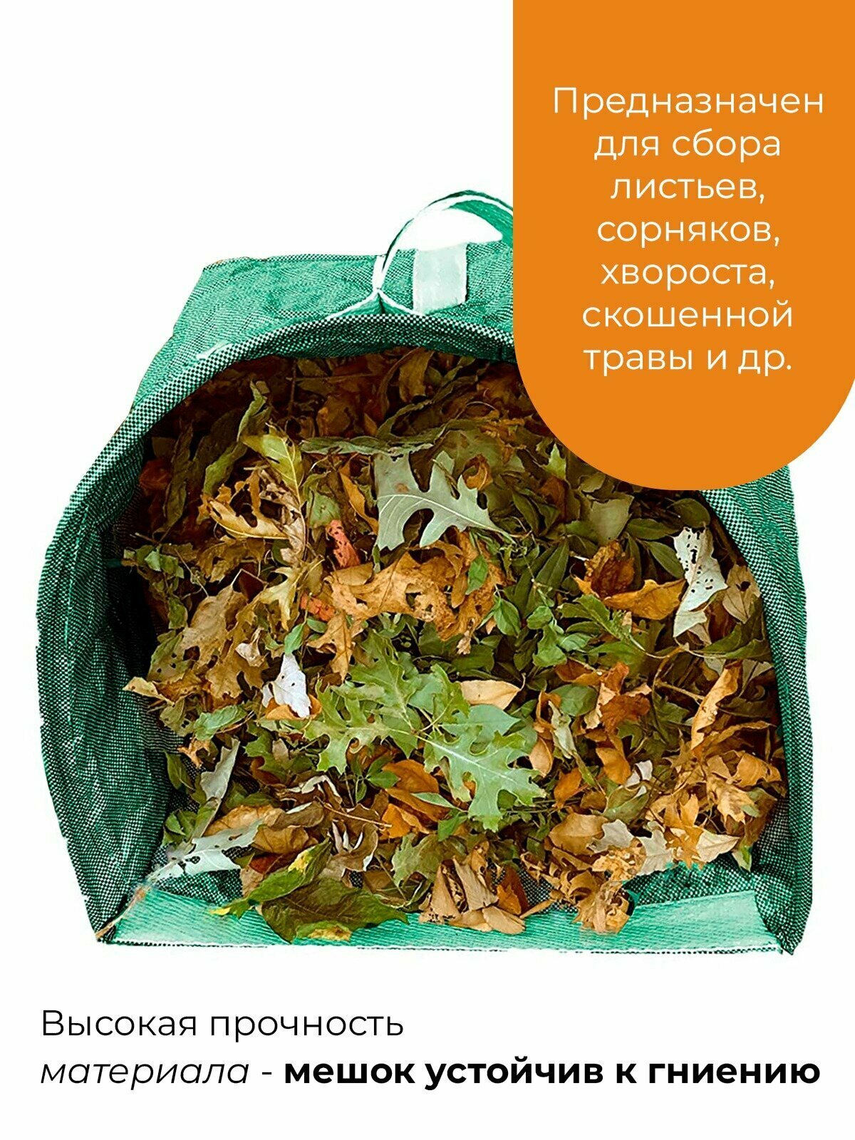 Cадовая сумка для мусора, мешок для компоста и садового мусора 50 см, полипропилен, пакет садовый с ручками информация: