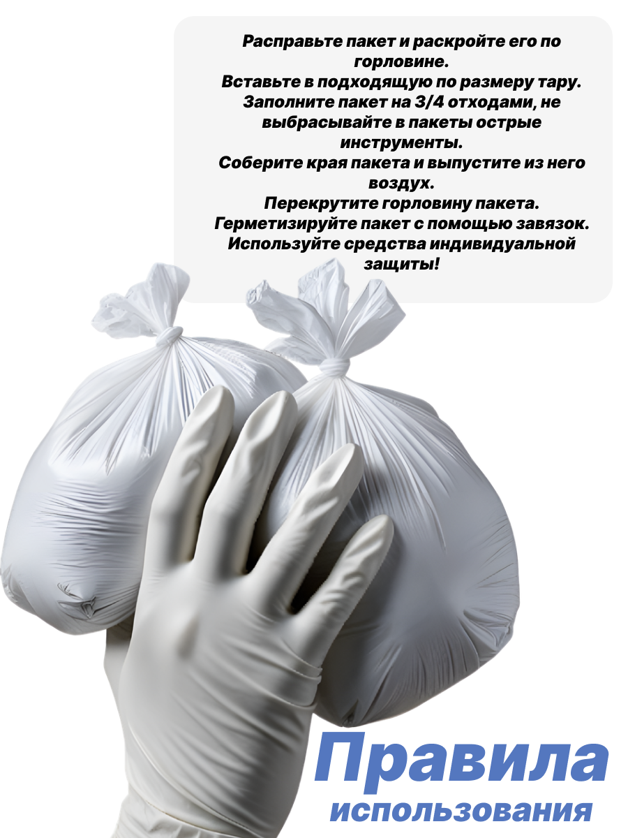 Отзывы на Пакеты для медицинских отходов класса А,90*130,100мкм. белые-75шт.