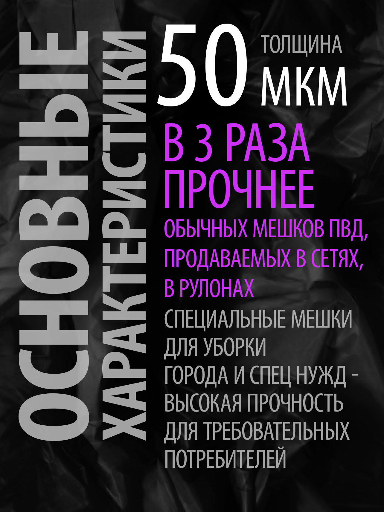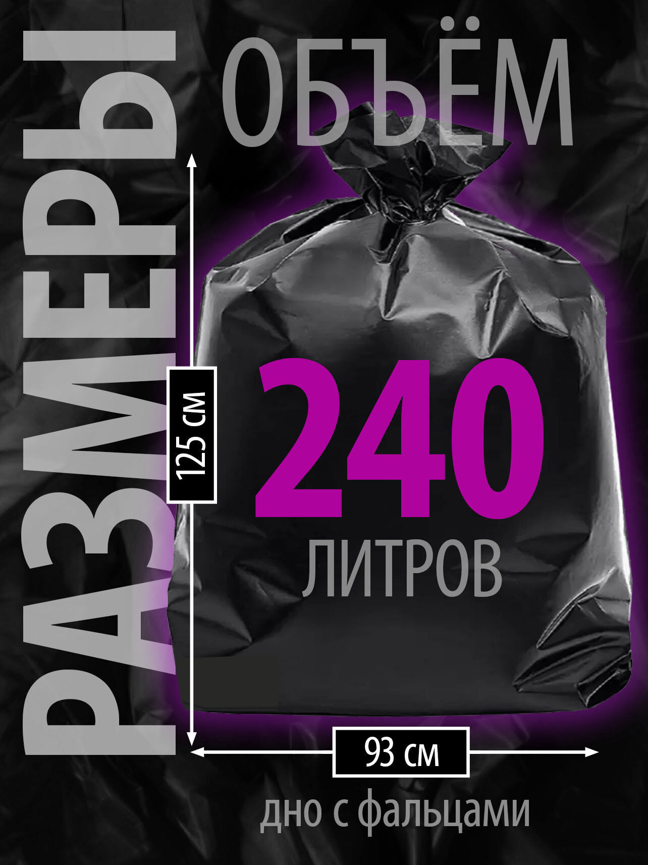 Мешки для мусора прочные 240 литров, в упаковке 10 штук, ПВД, 50 мкм, размер 93х125 см, черные информация: