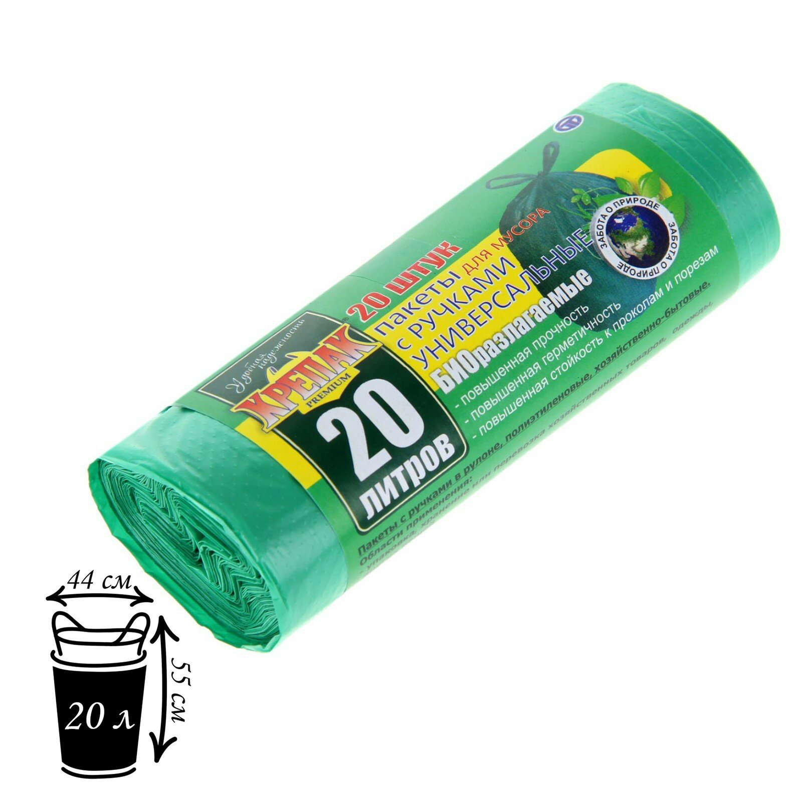 Мешки для мусора «БИОразлагаемые», 20 л, с ручками, ПНД, 10 мкм, размер 44×55 см, 20 шт, зелёные информация: