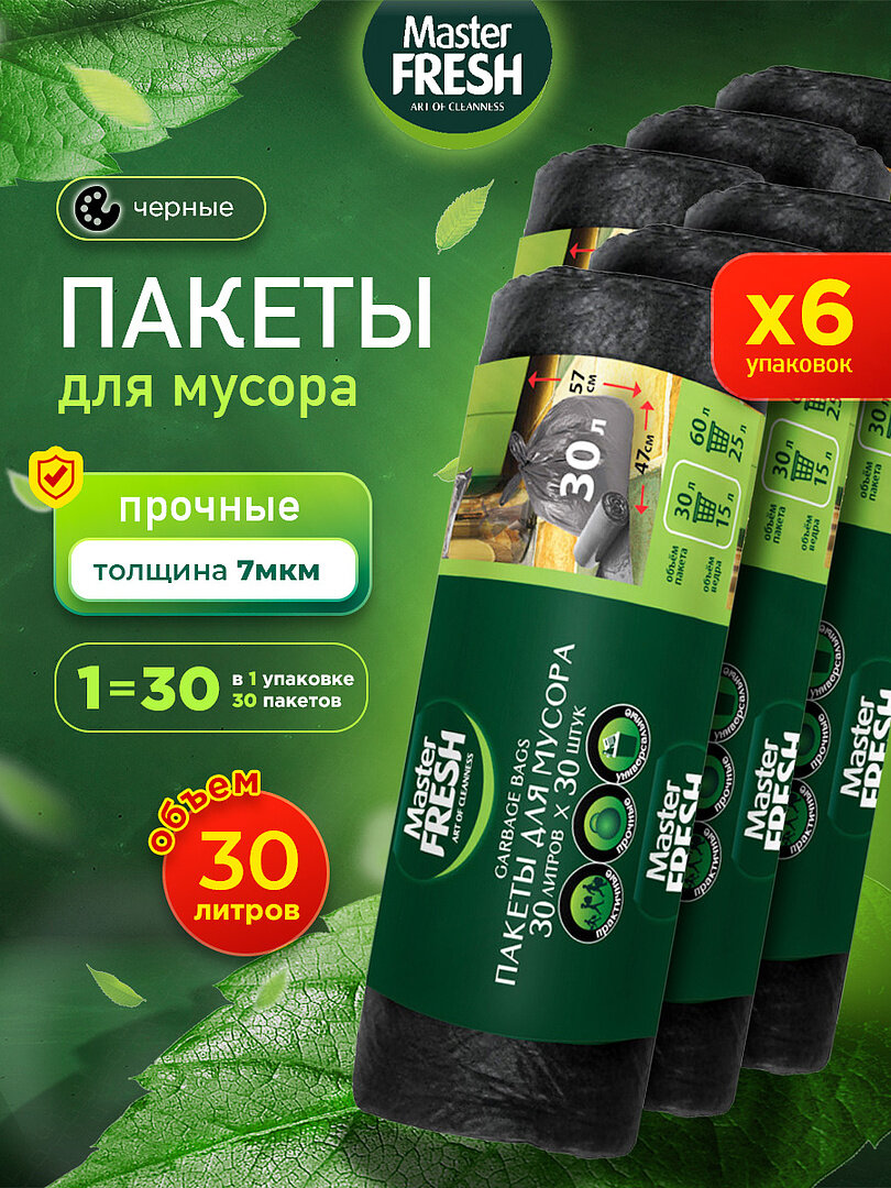 Пакеты для мусора Master Fresh набор черные 7мкм 30л/30шт*6шт информация: