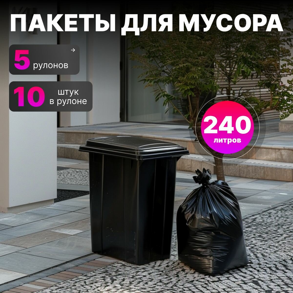 10 цен на Мешки (пакеты) для мусора 240 л, прочные 50 шт 5 упаковок, для хранения