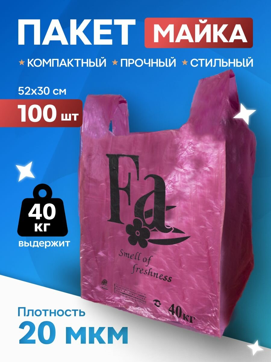10 цен на Фасовочный пакет, Пакет майка полиэтилен, 20 микрон, 30x52 см, прочный, розовый 100шт.