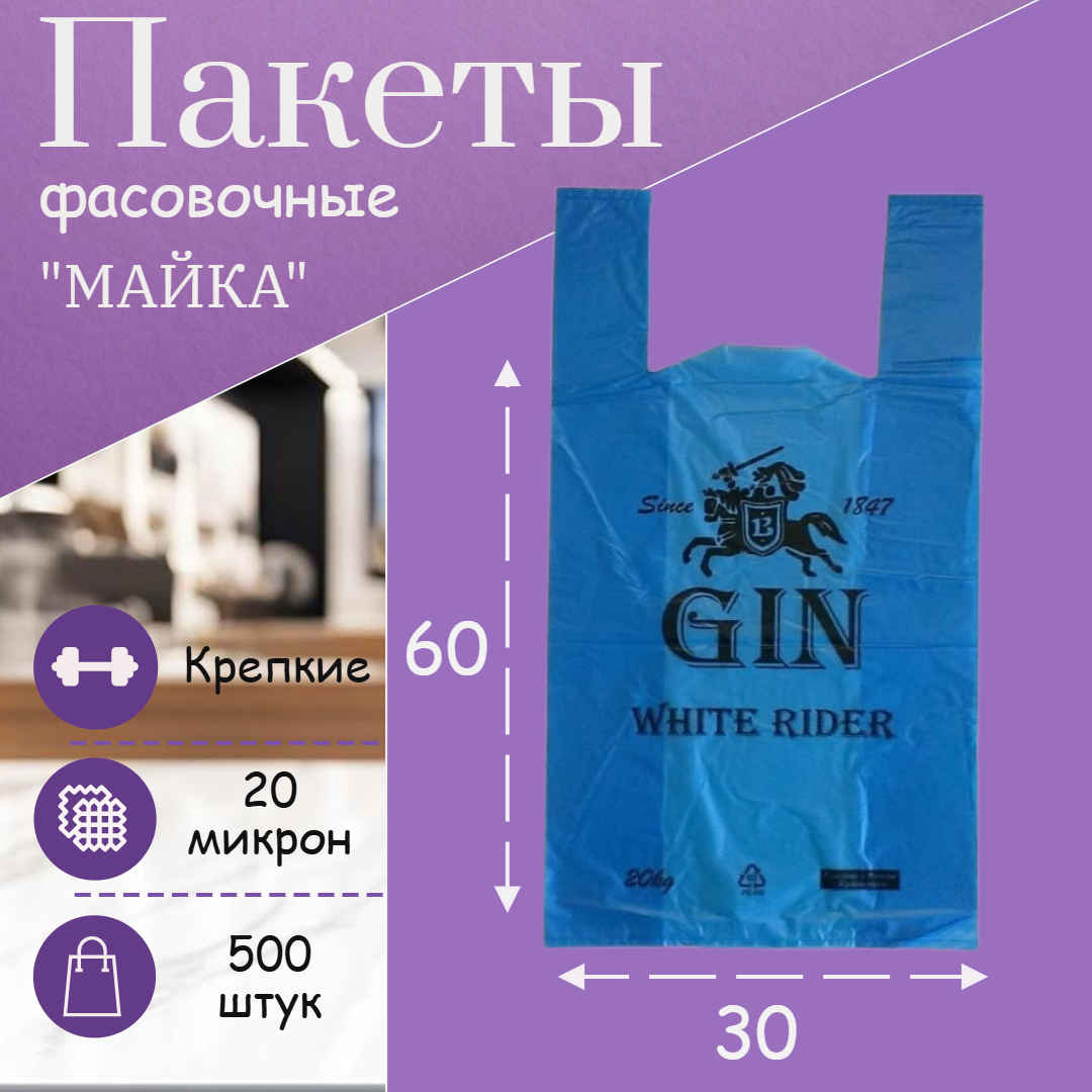 Фасовочные пакеты "Майка", полиэтилен, с петлевыми ручками, 30×60 см, 500шт, 20 микрон информация:
