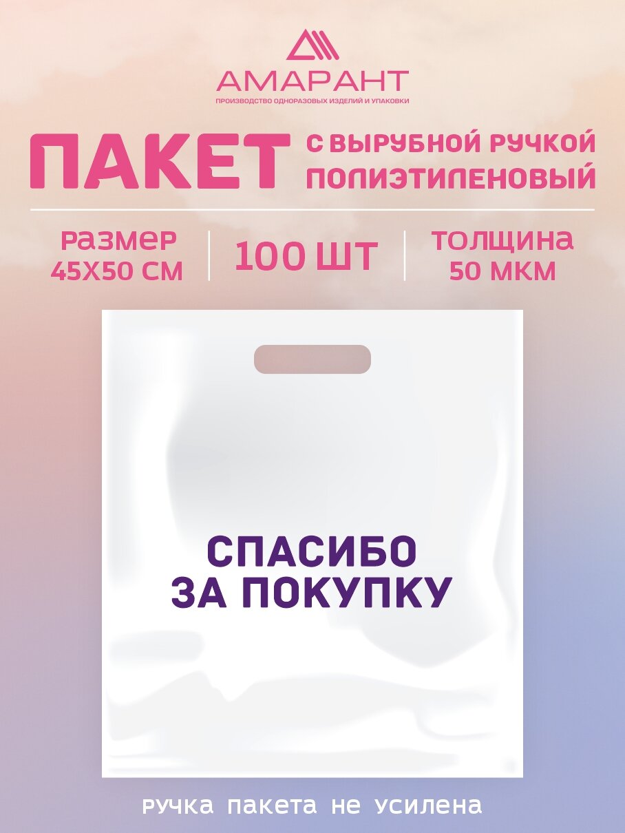 Пакет Амарант "Спасибо за покупку" вырубной ручкой 45*50 см, 100 шт информация: