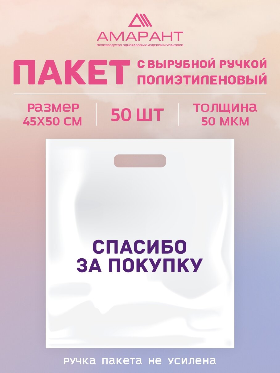 Пакет Амарант "Спасибо за покупку" вырубной ручкой 45*50 см 50 шт информация: