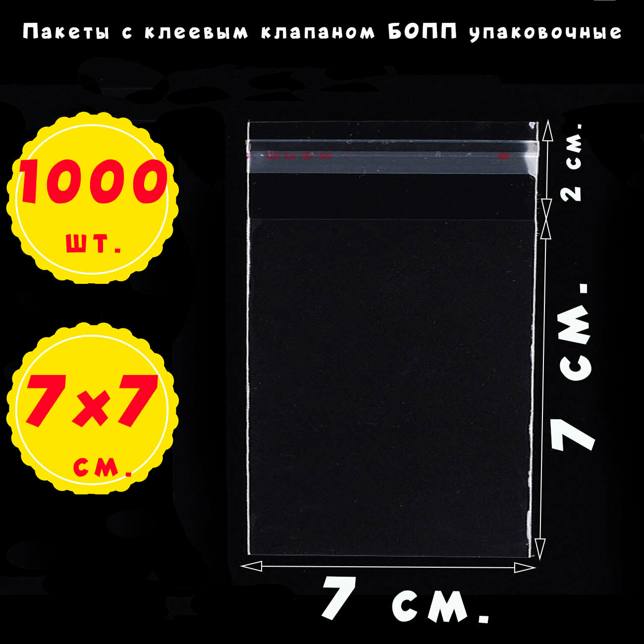 1000 пакетов 7х7+2 см с клеевым клапаном упаковочные из прозрачной пленки бопп информация: