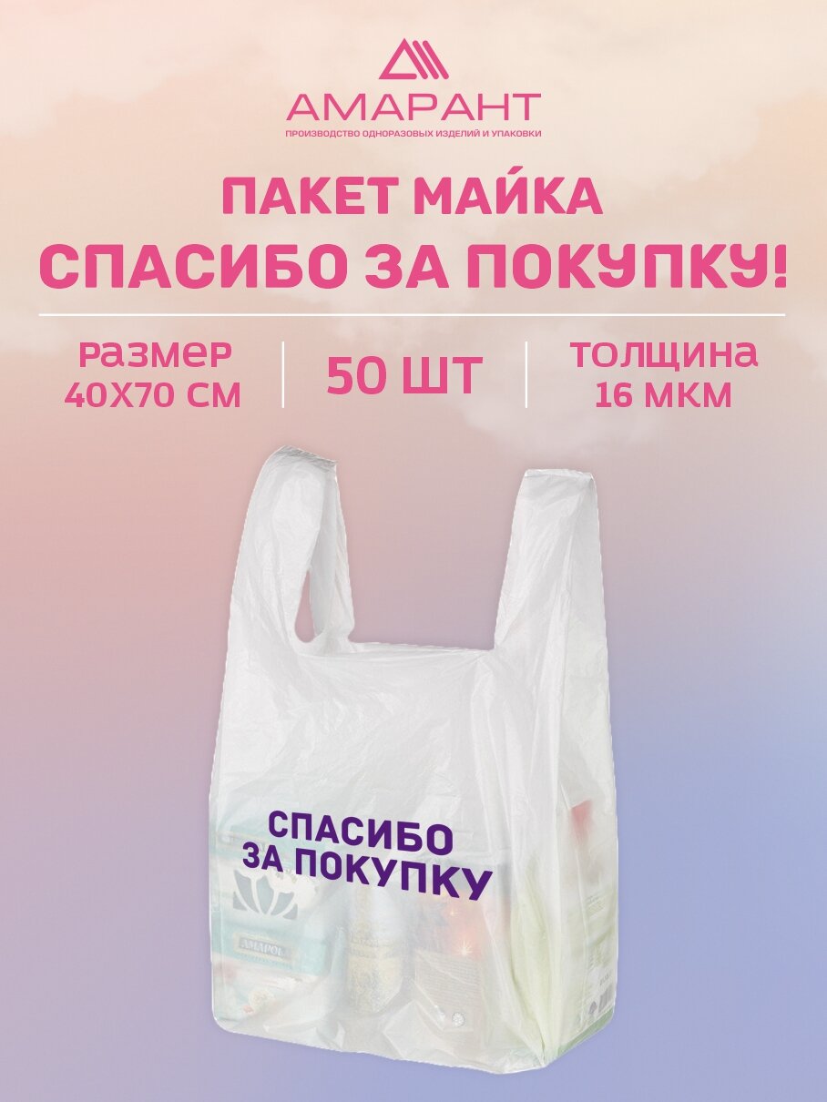Пакет Майка "Амарант" полиэтиленовая "Спасибо за покупку" 40x 70 см, 50 шт информация: