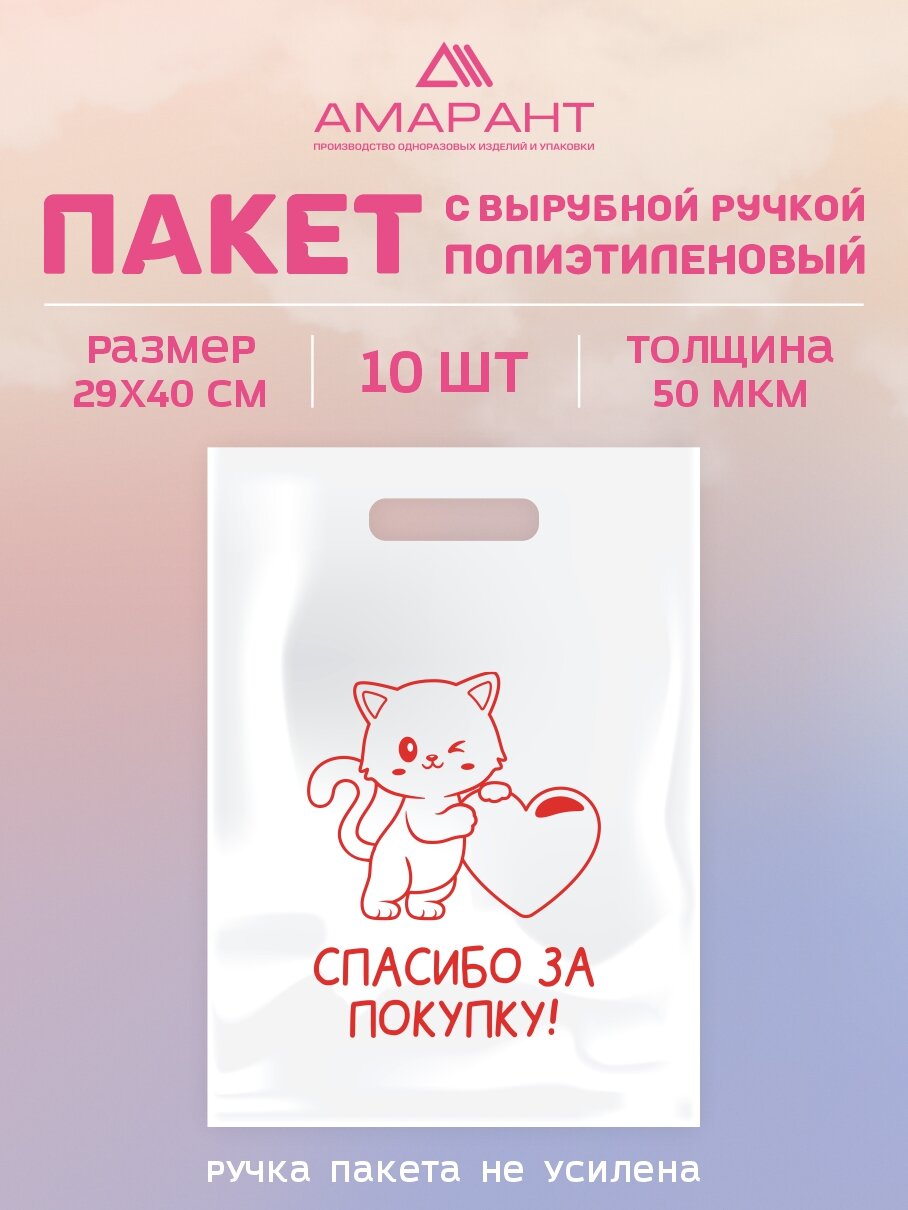 Пакет Амарант "Спасибо за покупку" с котиком с вырубной ручкой 29*40 см 10 шт информация: