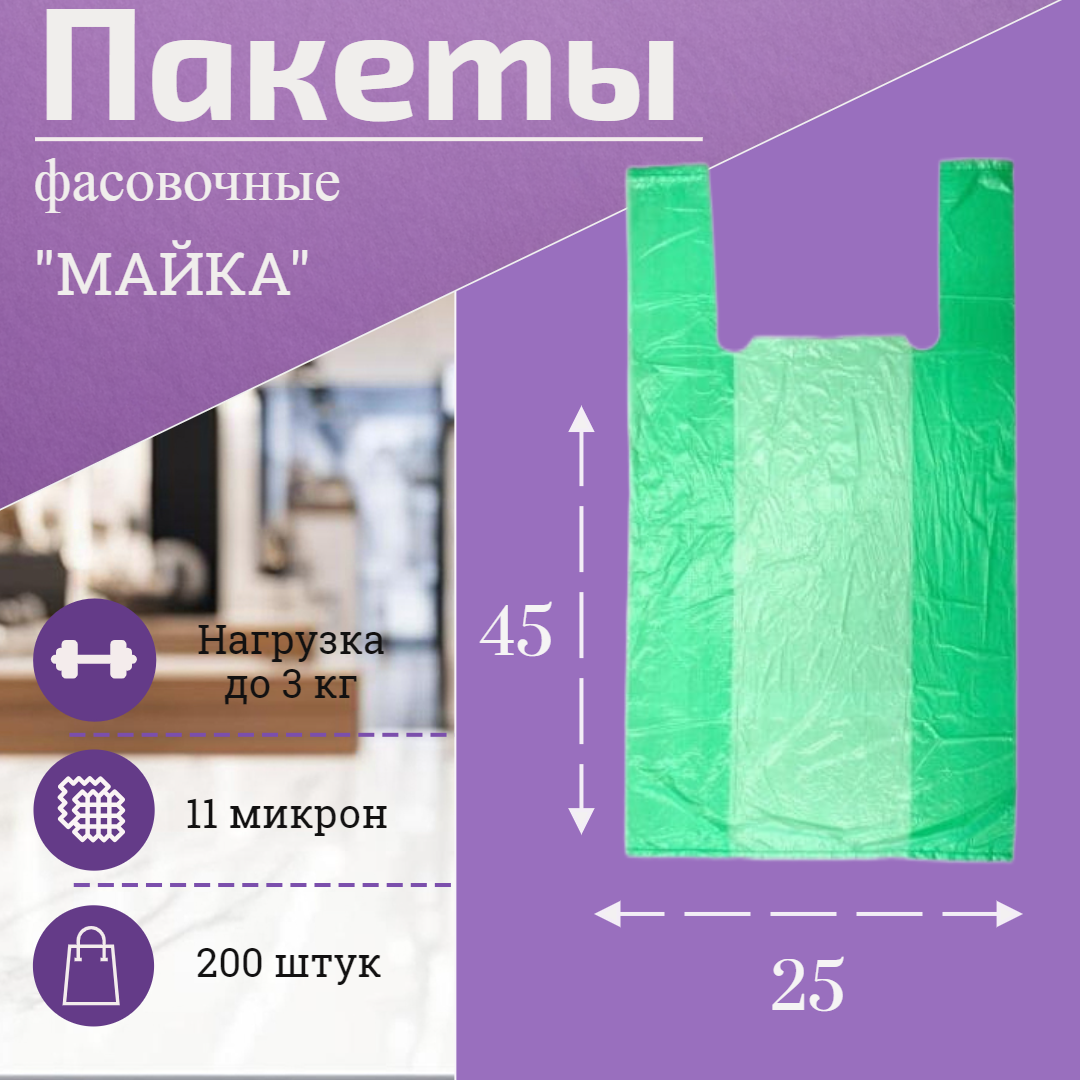 10 цен на Пакеты "Майки" 25x45 см, 200 штук, зеленые
