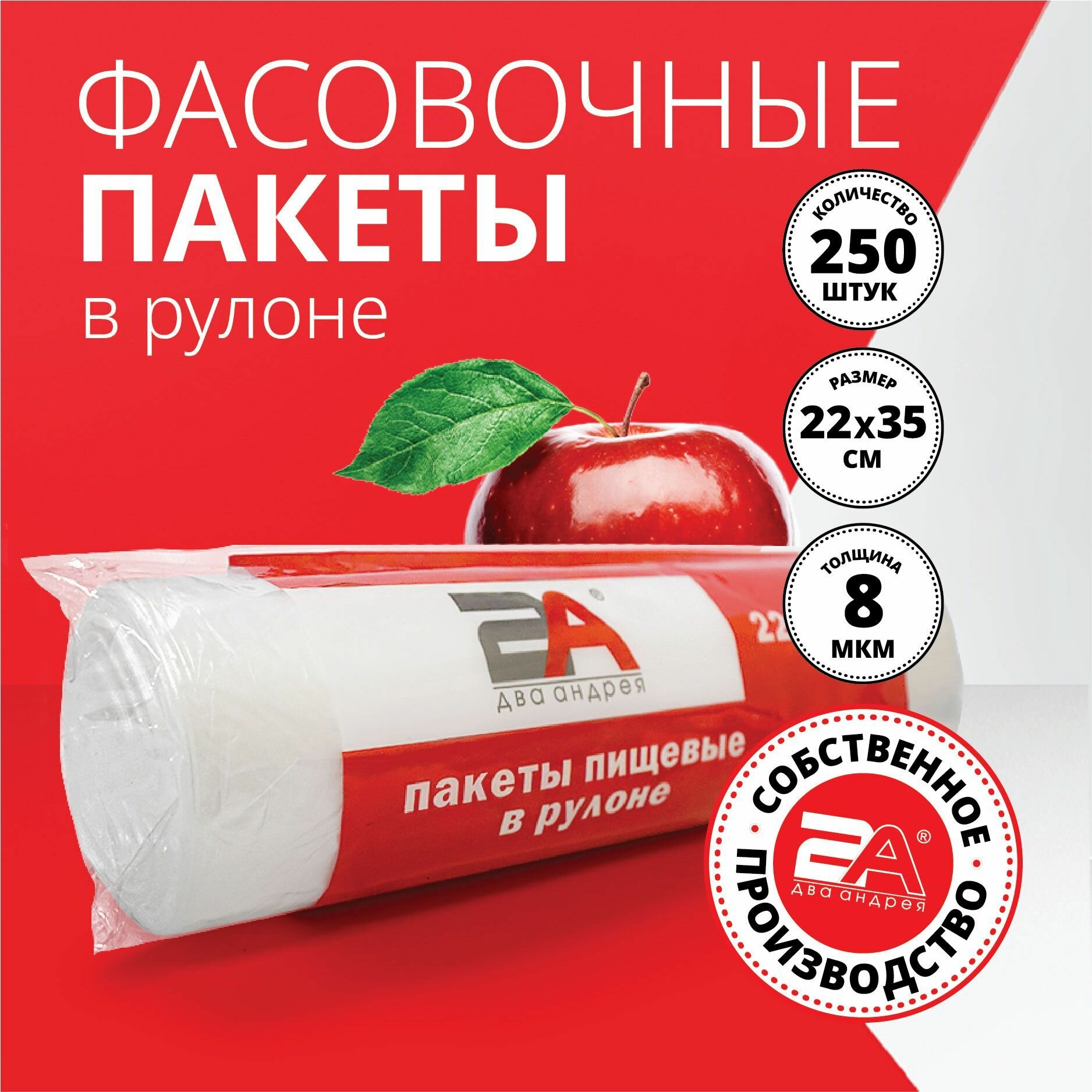 Фасовочные пакеты Два Андрея в рулоне, полиэтилен, 22 см х 35 см, 8 мкм, 250 шт информация: