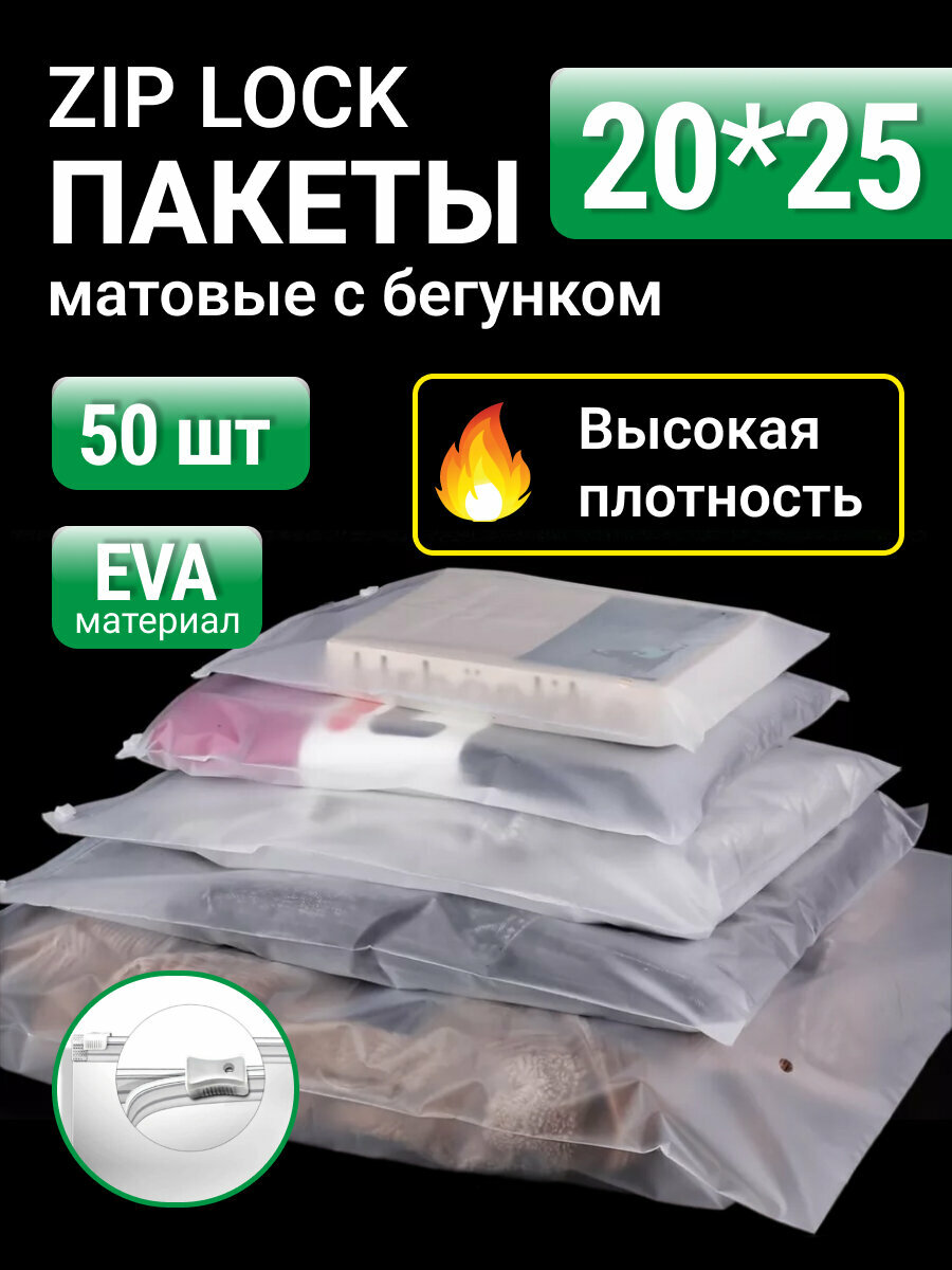 10 цен на Пакеты для хранения вещей с zip lock бегунком 20х25 см, матовые 50 шт, 120 мкм