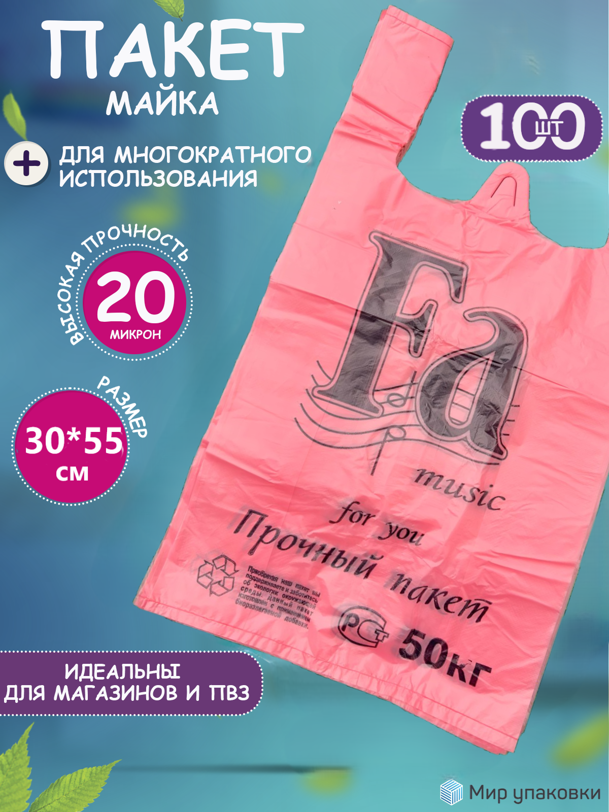 Пакет майка FA 30*55см цвет розовый, 100шт. информация: