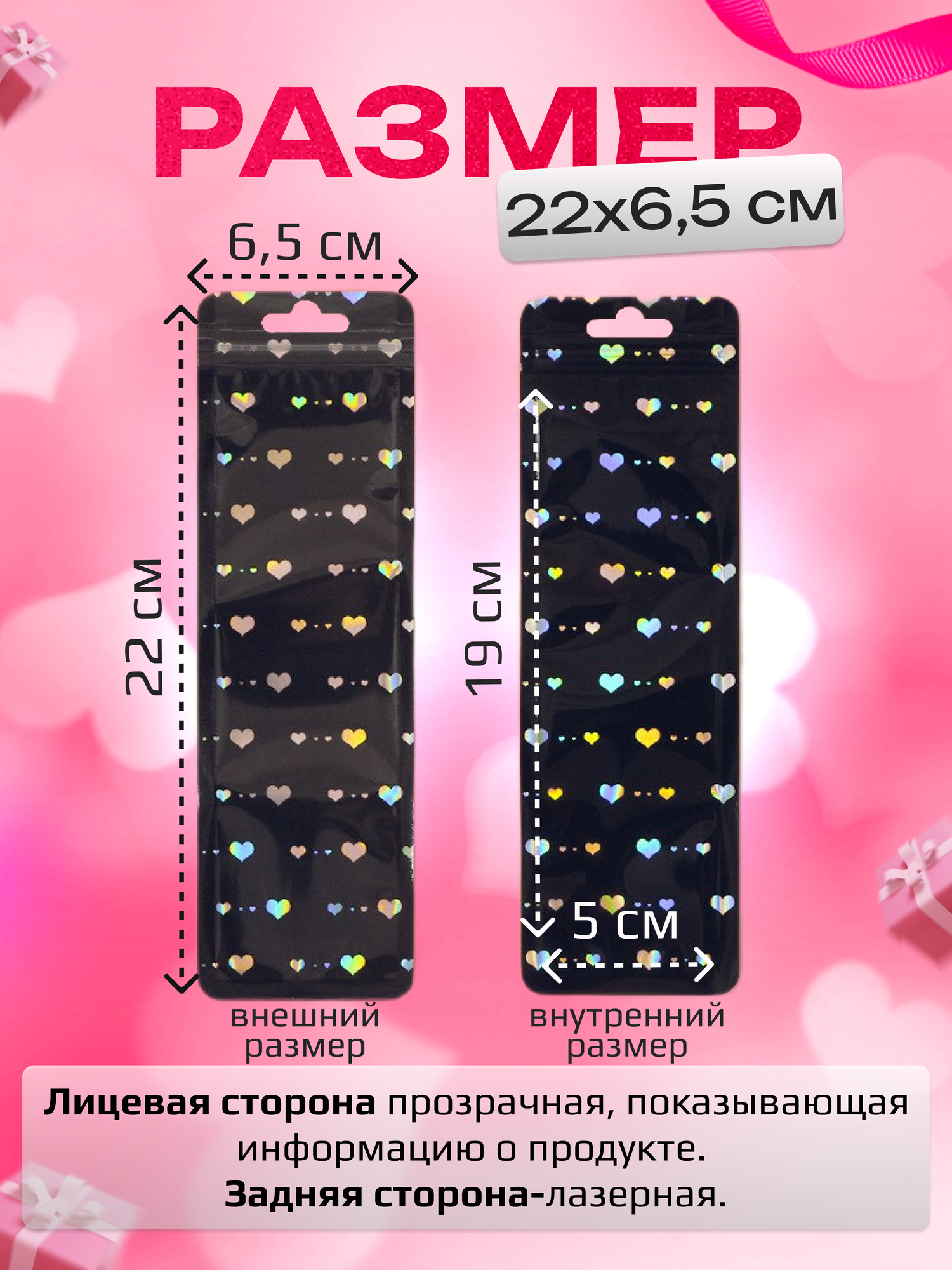 10 цен на "Пакеты для бизнеса" - голографические фасовочные пакетики с застежкой Zip-Lock, 50 штук, 6,5*22 см