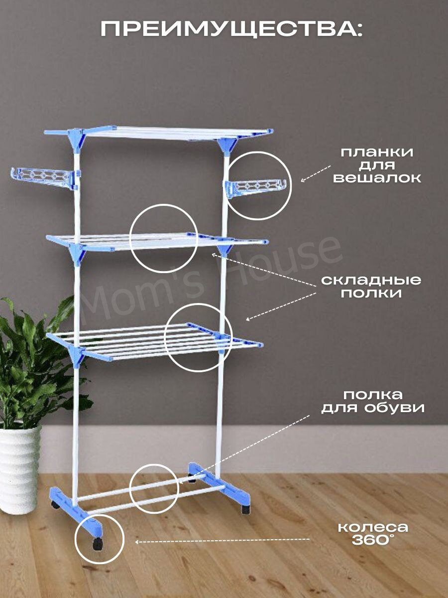 Сушилка для белья напольная вертикальная складная металлическая на колесиках информация: