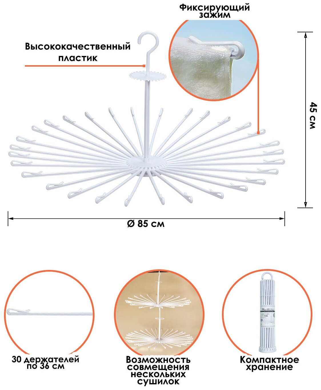 10 цен на Сушилка для белья с 30 спицами держателями 85*85*45 см Kokubo