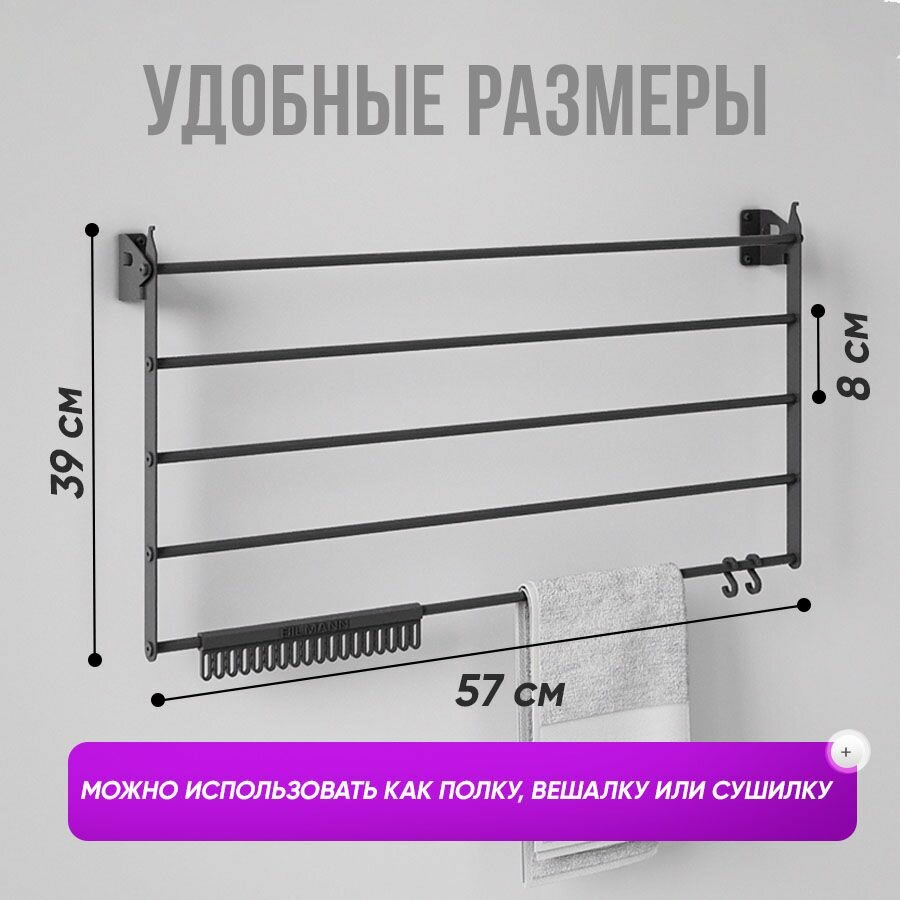 10 цен на Сушилка для белья / одежды / полотенец настенная складная BILMANN, компактная, металл, 57 см, черная, на стену в ванную