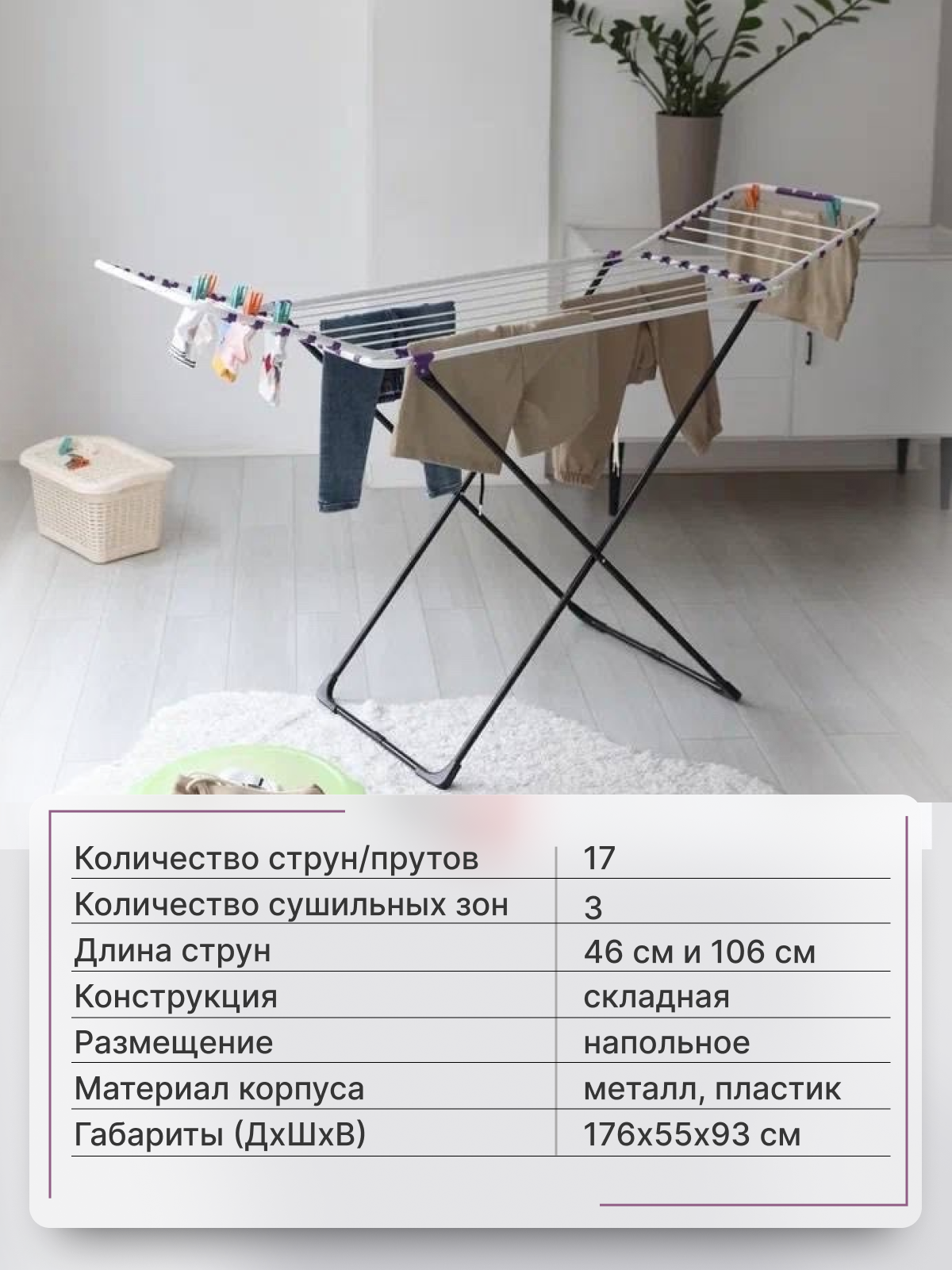 Отзывы на Сушилка для белья, складная напольная, MATKASYM, SAKURA, белая/фиолетовая, металлическая