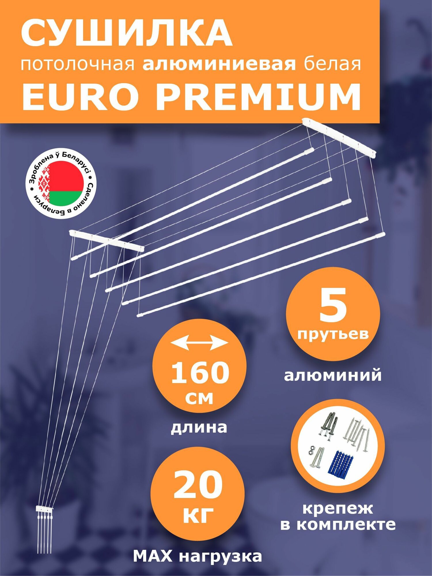 10 цен на Сушилка для белья потолочная 160 см Euro Premium алюминиевая белая 5 прутьев Comfort Alumin Group