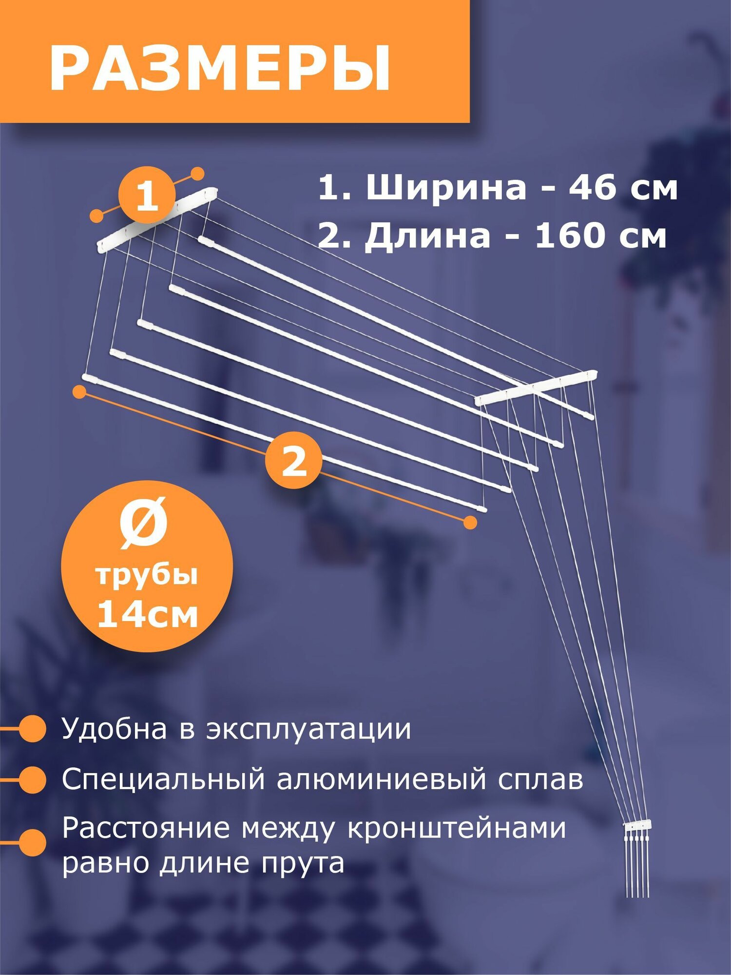 Сушилка для белья потолочная 160 см Euro Premium алюминиевая белая 5 прутьев Comfort Alumin Group информация: