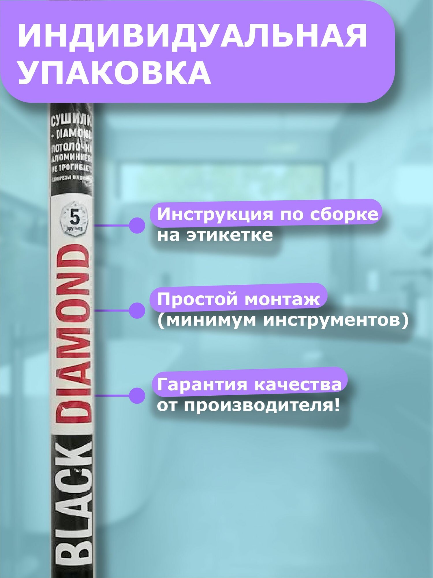Сушилка д/белья потолочная "BLACK DIAMOND" 1,7 м. EURO PREMIUM алюминиевая 5 прутьев 2 979 ₽