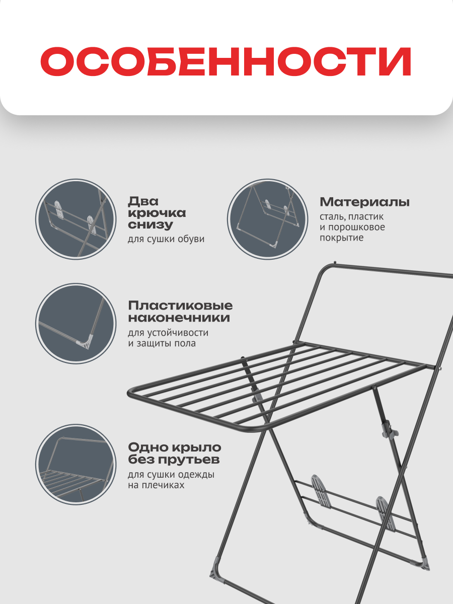 Сушилка для белья 6,7 м, сушка обуви, верхняя штанга, черный, 98х62х106 см информация: