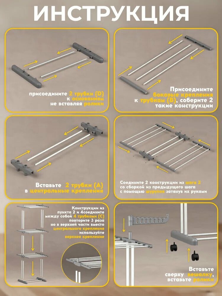 Сушилка для белья, напольная, складная, вертикальная светло - серая Vidovito информация: