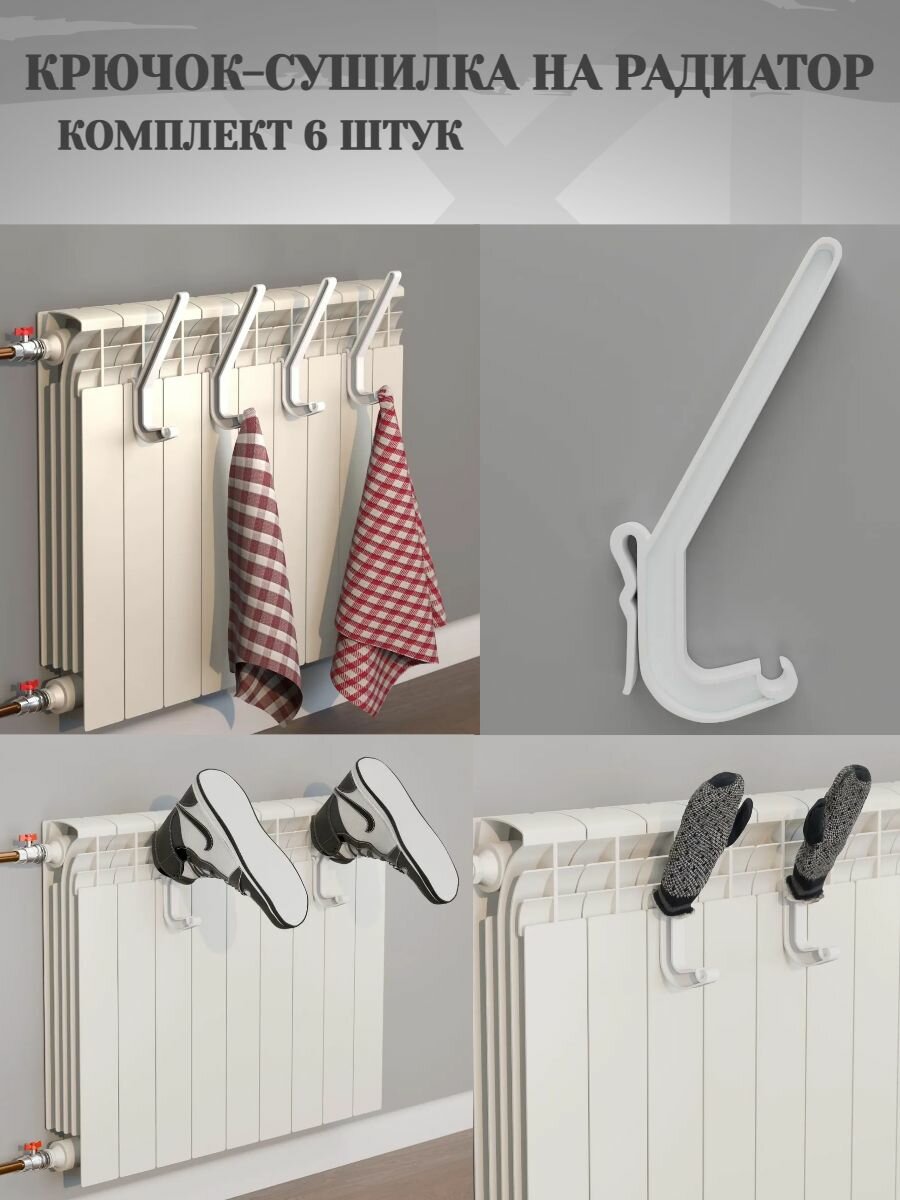 Отзывы на Крючок-сушилка на радиатор для одежды и обуви. Навесная сушилка. Прилада навесная 6 крючков