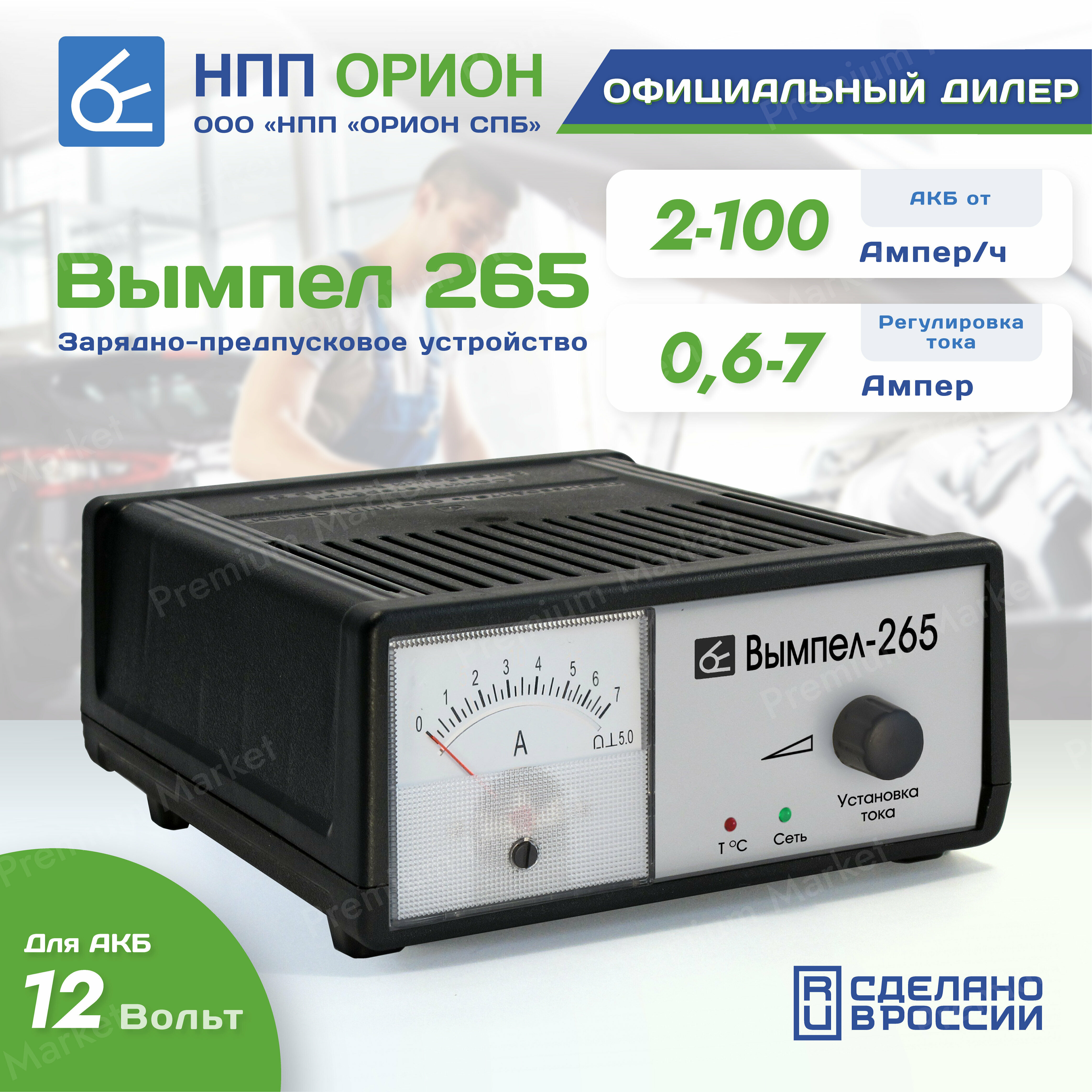 НПП «Орион» Зарядно-предпусковое устройство АКБ Вымпел-265, 0,6 - 7 А, 12 В, до 100 Ач 2 845 ₽