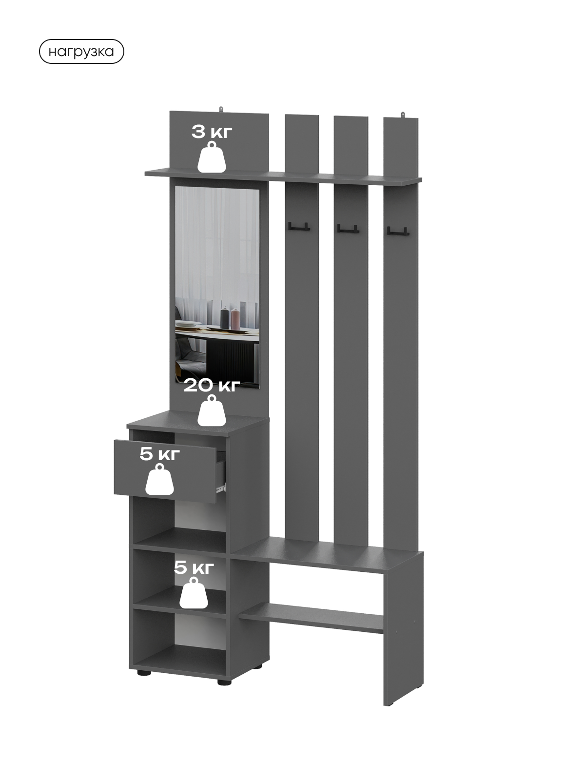 Вешалка ARNIKA "Денвер", с зеркалом, ЛДСП, серая, 100x35x200см информация: