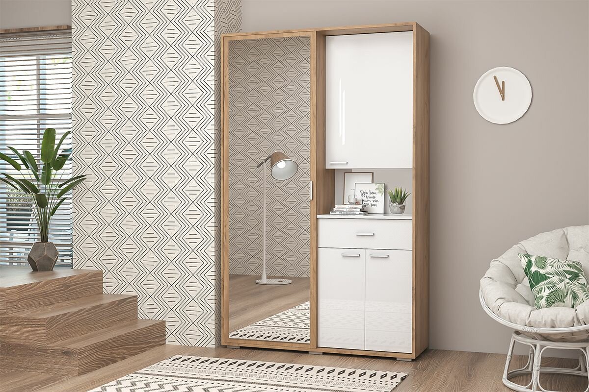 10 цен на Прихожая Иннэс-4 Белый глянец/ Дуб Крафт золотой
