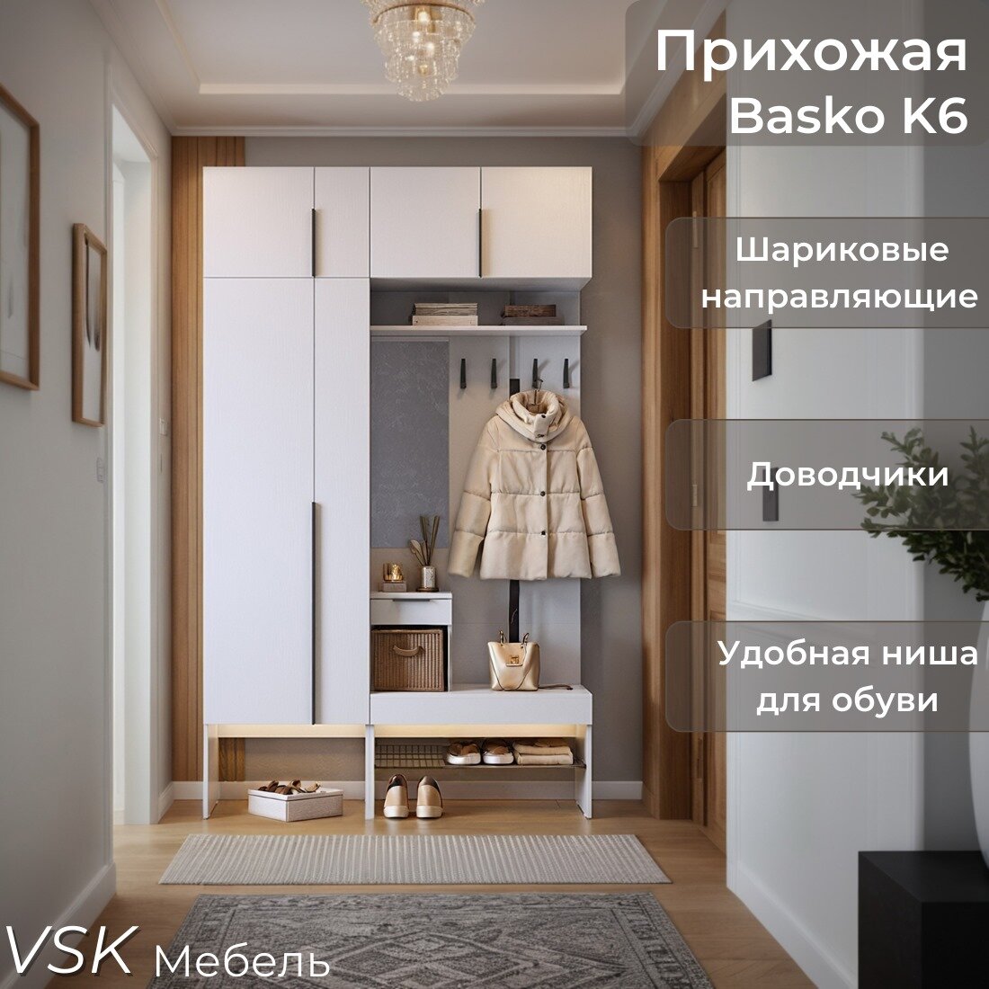 Отзывы на Прихожая Basko К6, комплект мебели в прихожую, Белое дерево, 140х235х34,9 см (ШхВхГ)