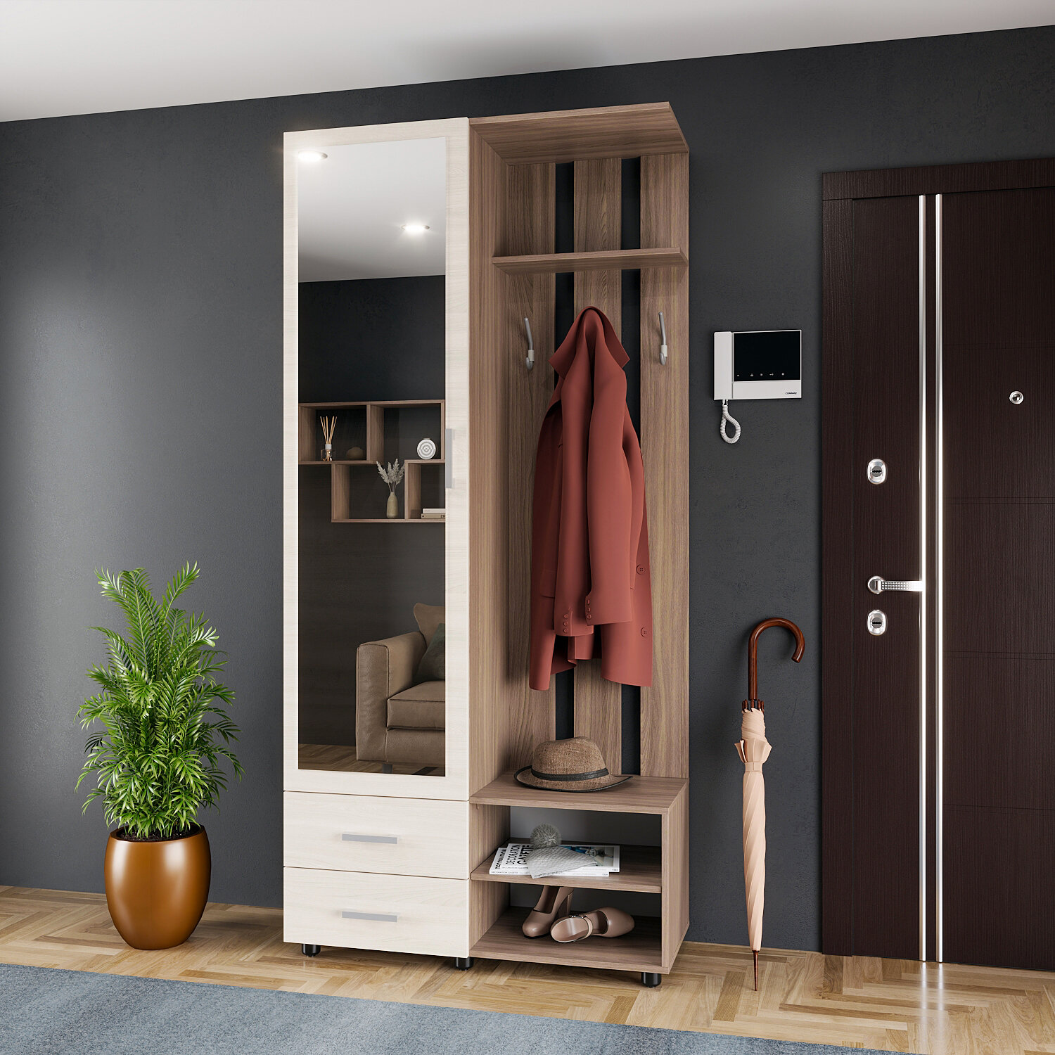 10 цен на Прихожая Натали 2 с зеркалом цвет: ясень шимо темный/ясень шимо светлый размер: 1000х410х2150 мм