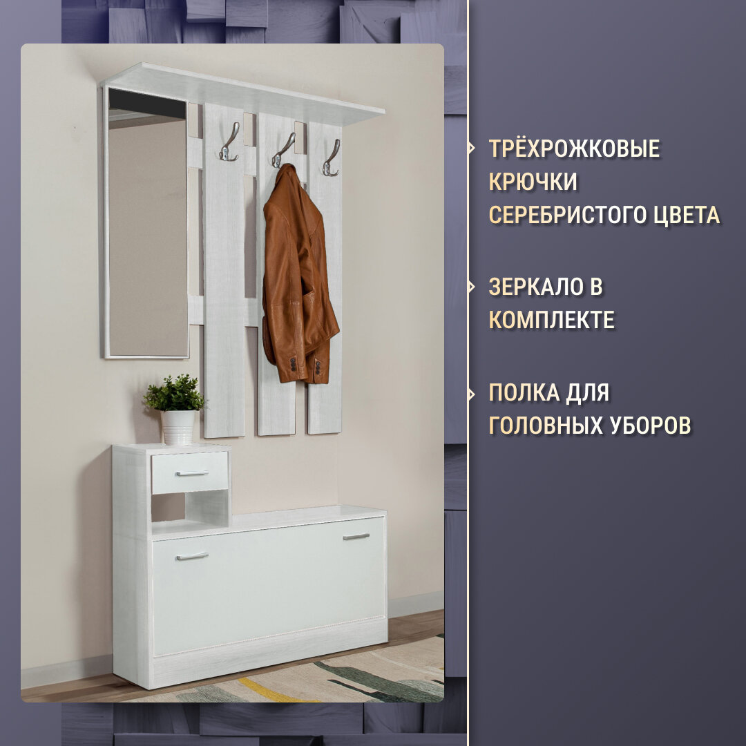 10 цен на Прихожая мебель комплект Интер 100х27х191 с полкой и вешалкой мебель для прихожей белый
