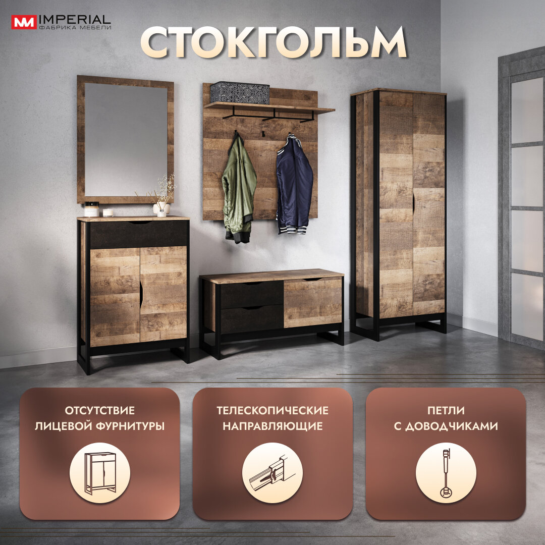 Отзывы на Прихожая Стокгольм Дуб гранж песочный/железный камень вешалка, комод, зеркало, обувница, распашной шкаф (ШГВ 234х40,2х195см)