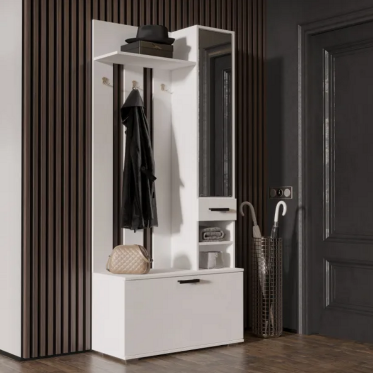 Комплект прихожей, прихожая Ника с зеркалом "Эра" Белая, ш91*в203*г35.4 см информация: