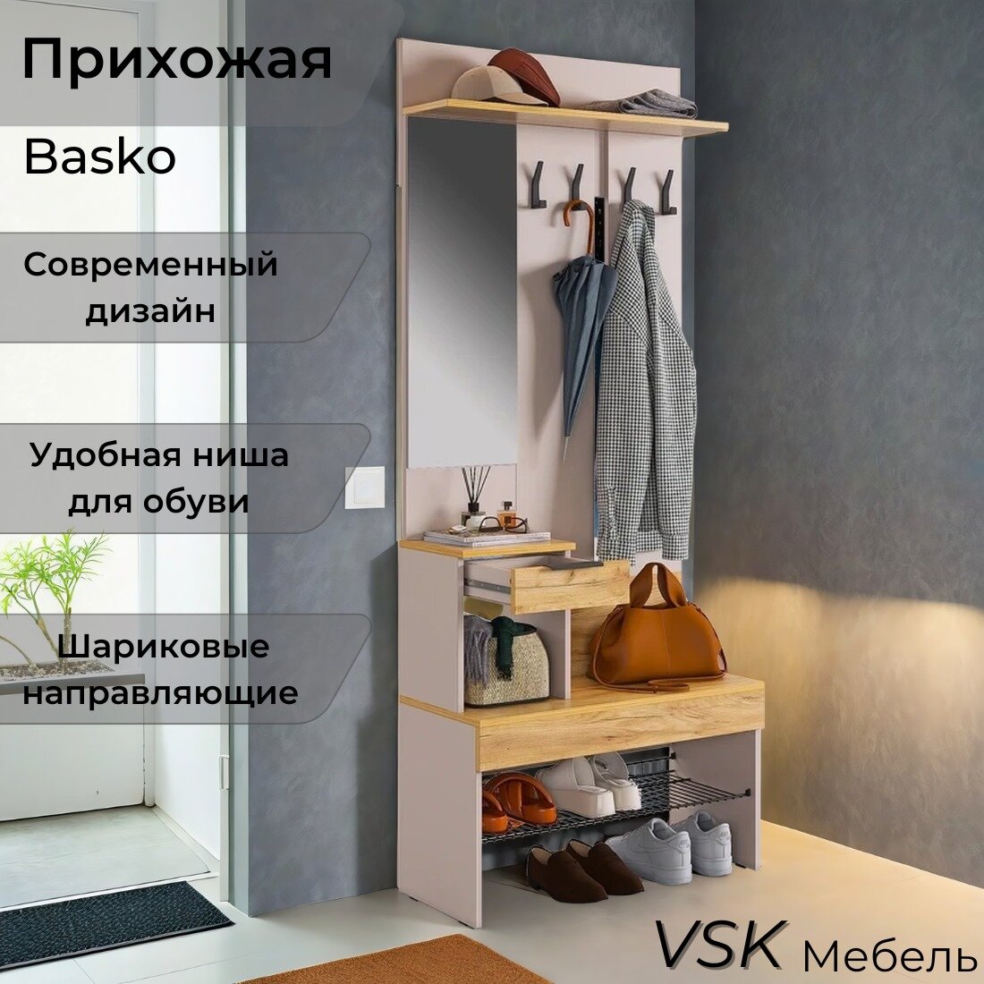 Отзывы на Прихожая Basko, комплект мебели в прихожую, Кашемир/дуб крафт золотой, 80,2х195х34,6 см (ШхВхГ)