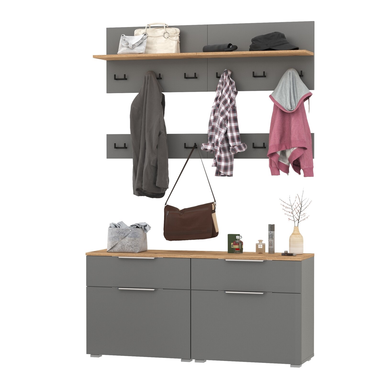 10 цен на Набор мебели в прихожую Моби Октава № 7 цвет серый графит/дуб крафт золотой, 129,8х35,4х197 см