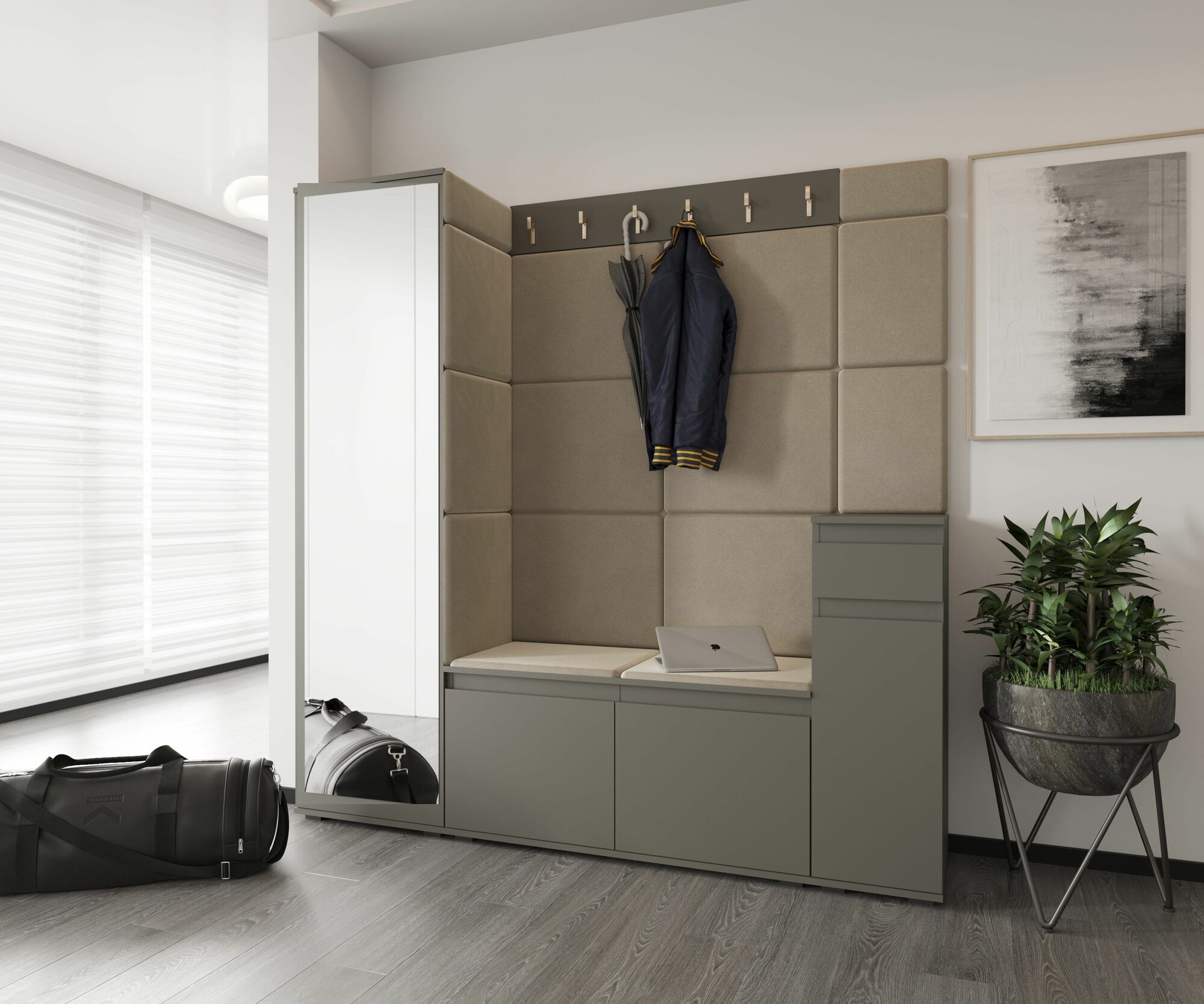 10 цен на Прихожая, прихожая комплект Stark 2, Серый Графит / Велюр Бежевый 180х185х40 см (ШхВхГ)