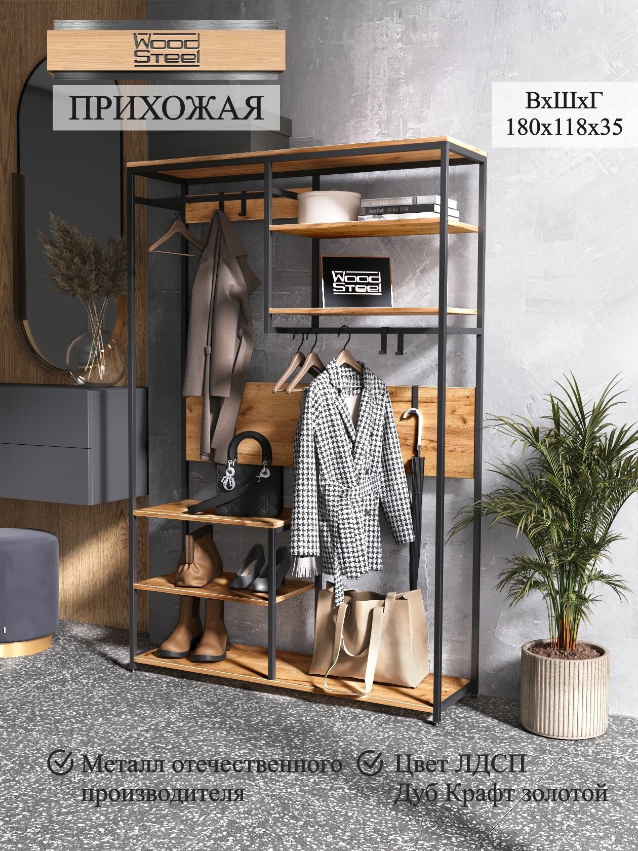 Отзывы на Прихожая WOODSTEEL "Urban", 180x118x35 см, стиль Лофт, ЛДСП, цвет дуб крафт золотой