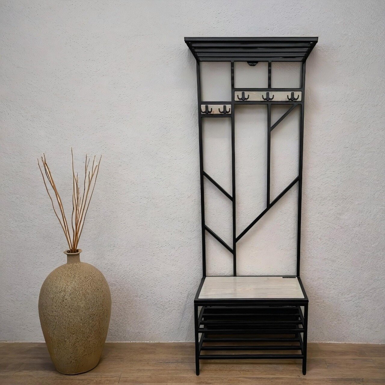 Отзывы на Прихожая Лофт Комплект прихожей из НАТУРАЛЬНОГО ДЕРЕВА и СТАЛИ 70*34*200(В) см