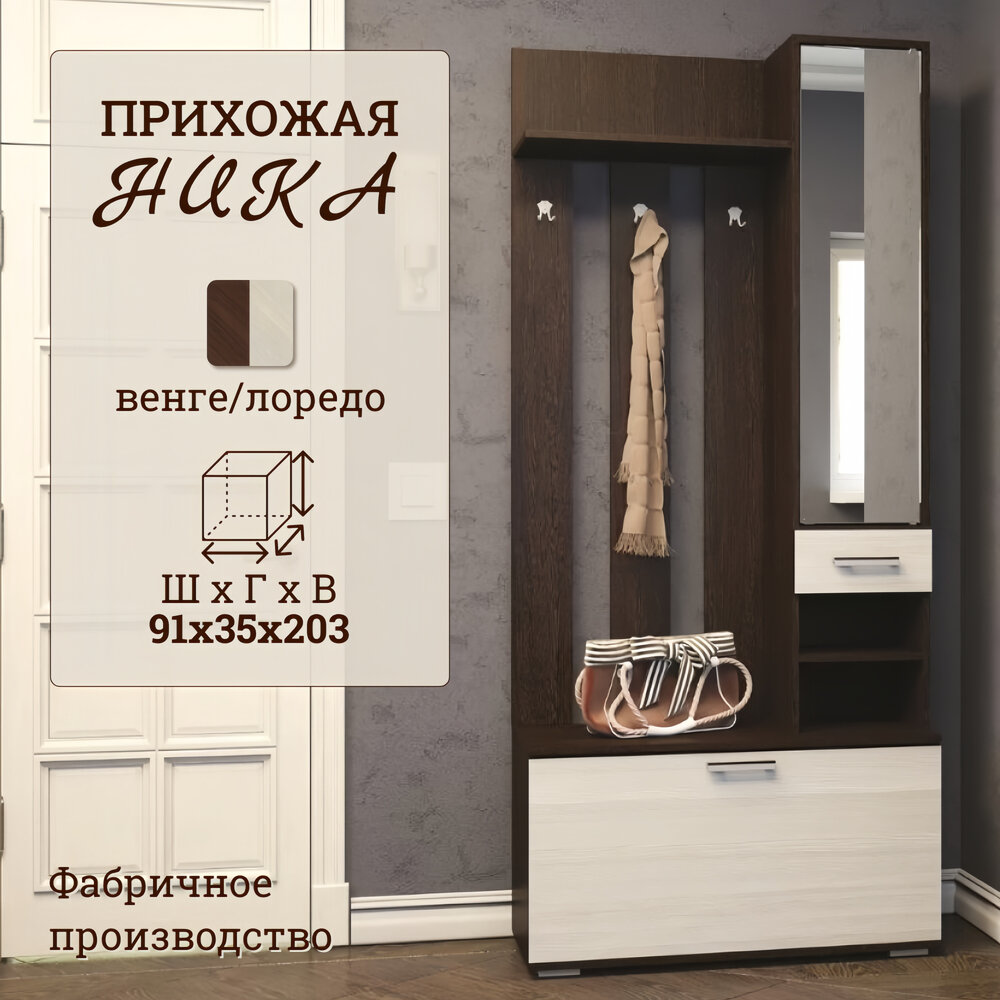 Прихожая комплект Ника, ширина 91 см, венге/лоредо, 91х35х203 см информация: