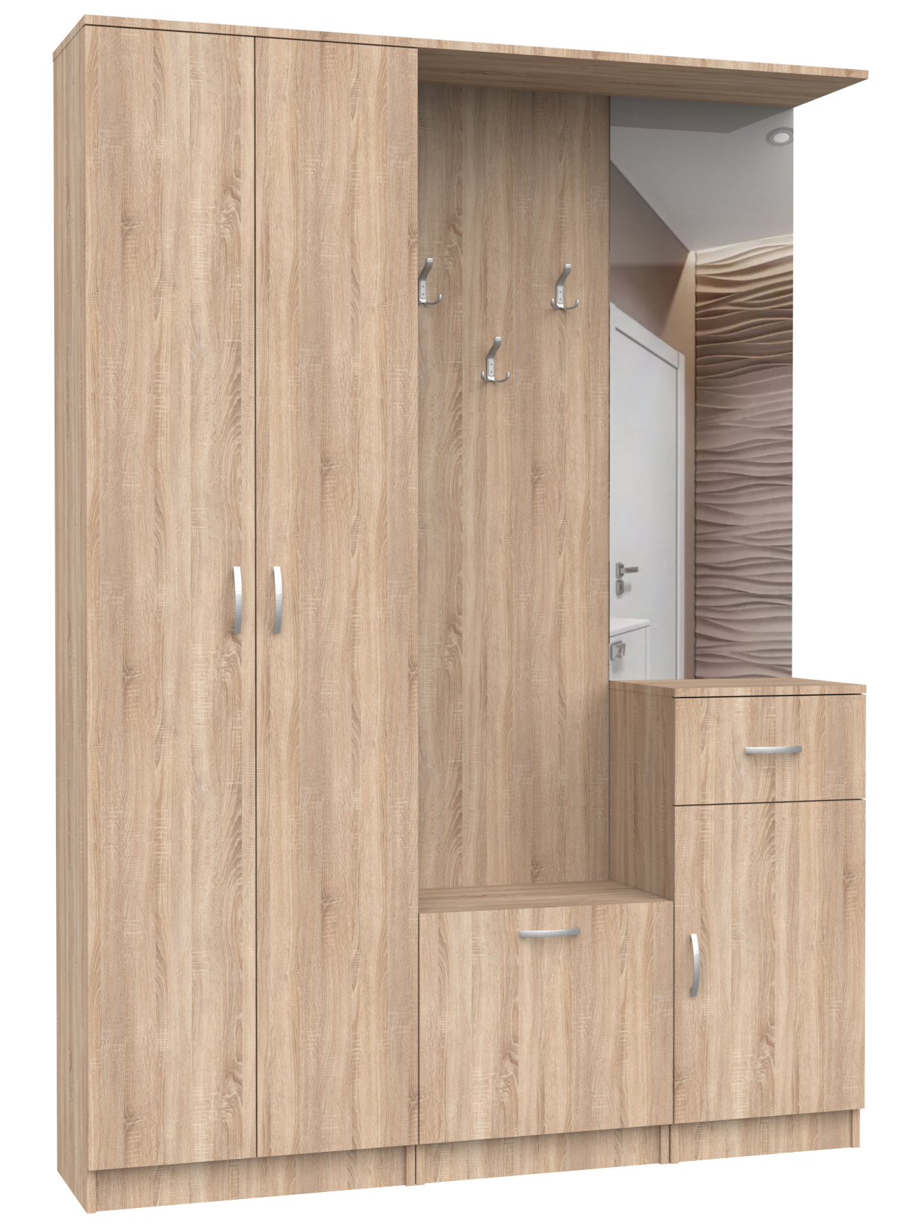 Отзывы на Прихожая с зеркалом и крючками для одежды Арти-5, ШхГхВ: 160х34х208 см, дуб сонома