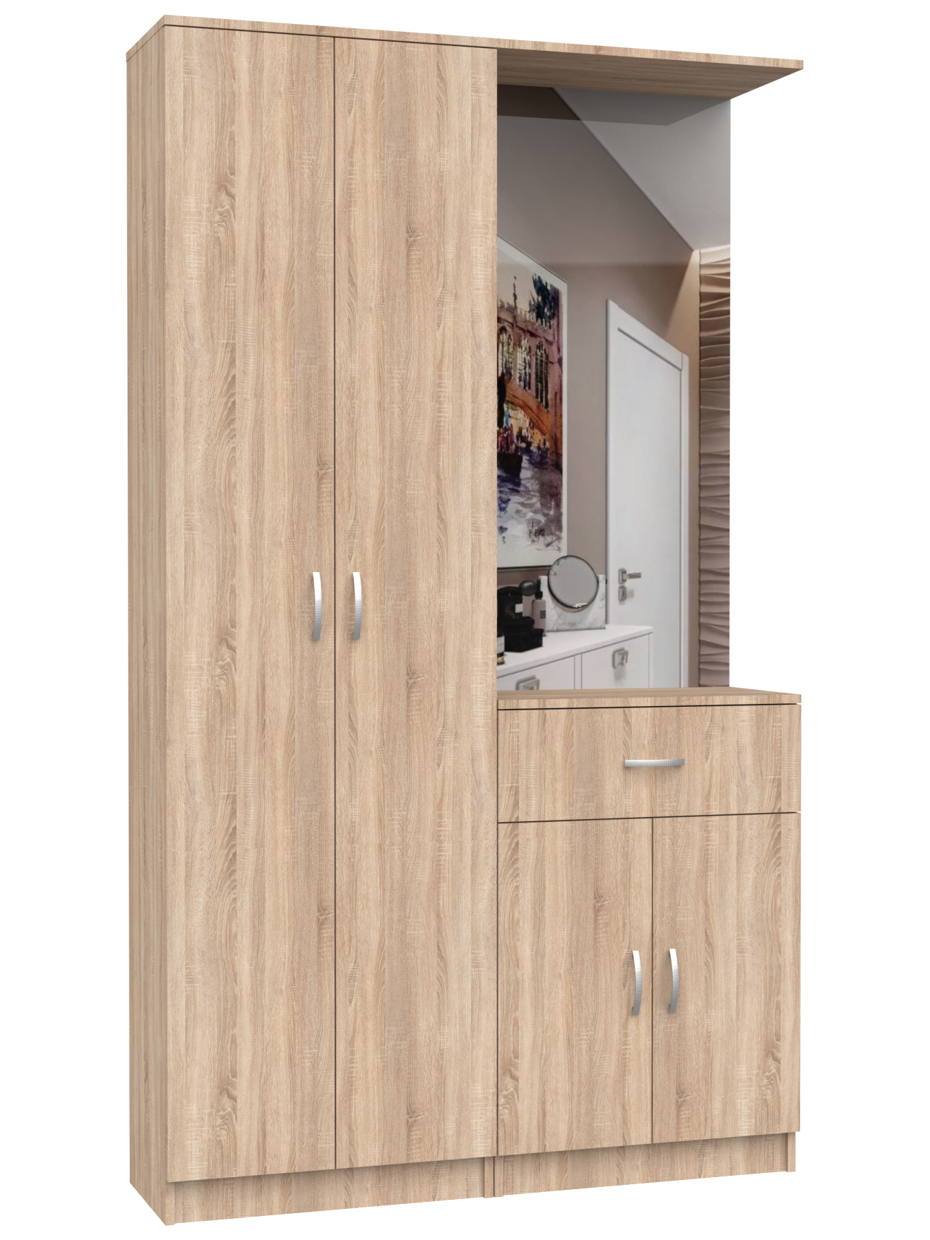 Отзывы на Прихожая с зеркалом и штангой для вешалок Арти-3, ШхГхВ: 120х34х208 см, дуб сонома
