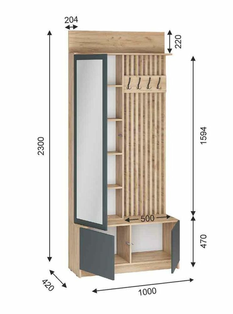 Модульная прихожая Стоуби дизайн 1 (дуб крафт золотой/серый графит) информация: