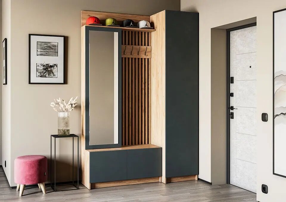 Модульная прихожая Стоуби дизайн 11 (дуб крафт золотой/серый графит) информация: